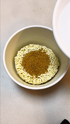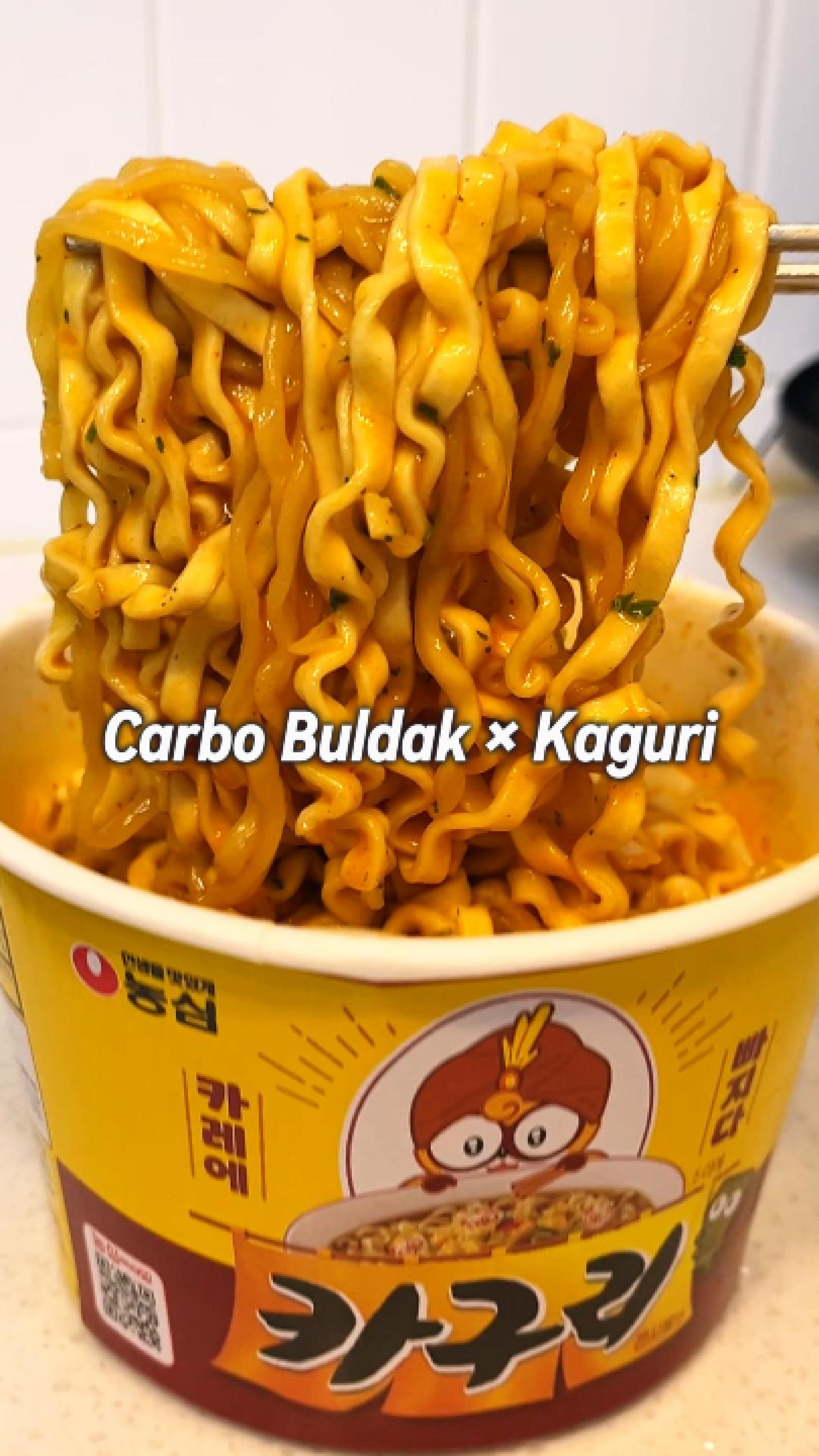 This recipe combines Carbo Buldak and Kaguri cup ramen using their original cooking methods.